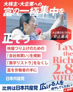 大企業の儲けは史上最高を更新。なのに働く人には回ってこない。 日本共産党はここにメスを入れます。 比例近畿ブロック、大激…続きを読む