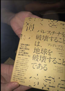 ガザと気候危機を繋げて考えたいと、翻訳に挑戦した本を紹介してくれました。