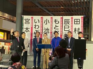 夕方、国会議員団で議員定数削減反対の街宣を行いました。
