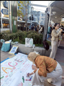隣で市民の方々がパレスチナのパネル展を開催中のところ、隣でやってもいいよとコラボ的になりました!