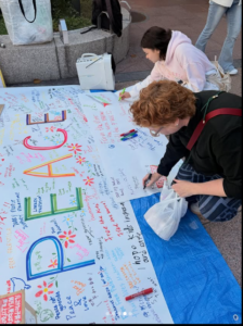 私たちは相変わらずピースメッセージを集めました。